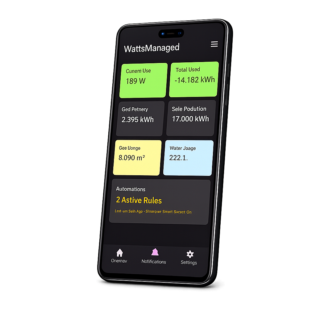 WattsManaged helps homeowners with solar panels turn insight into action. If standby power stays high overnight, automatically power down selected smart plugs and notify you.