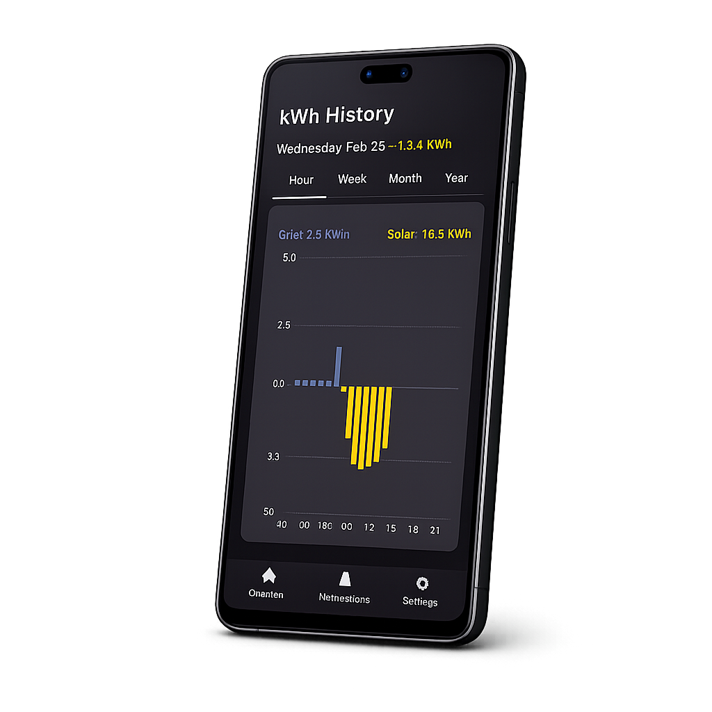 See household consumption and solar production live, in one view, so you always know what’s happening now.