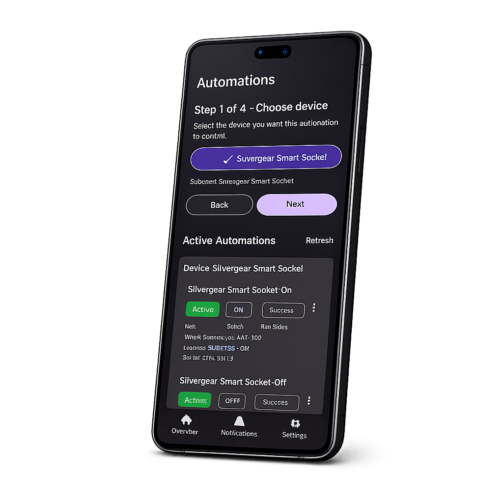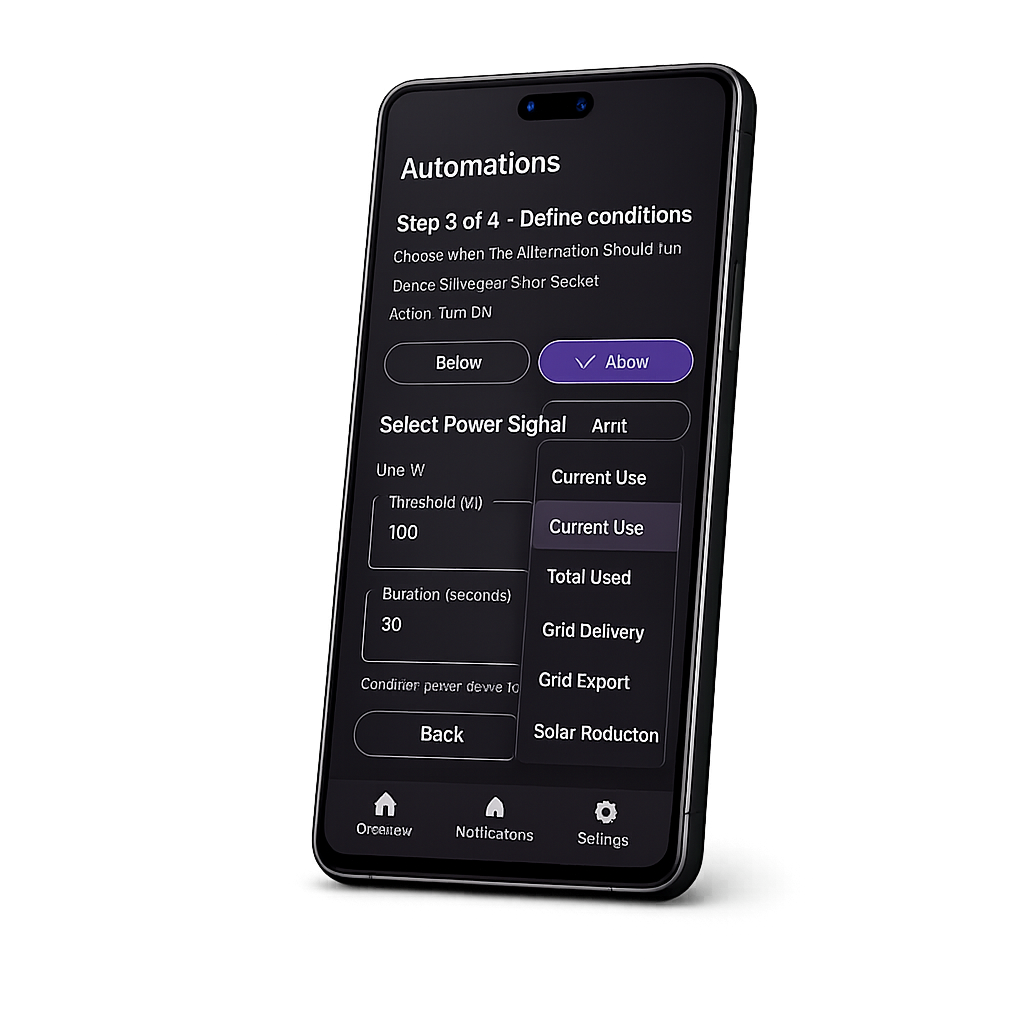 WattsManaged helps homeowners with solar panels turn insight into action. If standby power stays high overnight, automatically power down selected smart plugs and notify you.